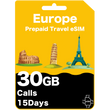 Europe Prepaid Travel eSIM Card 30GB 15Days - G-Starlink