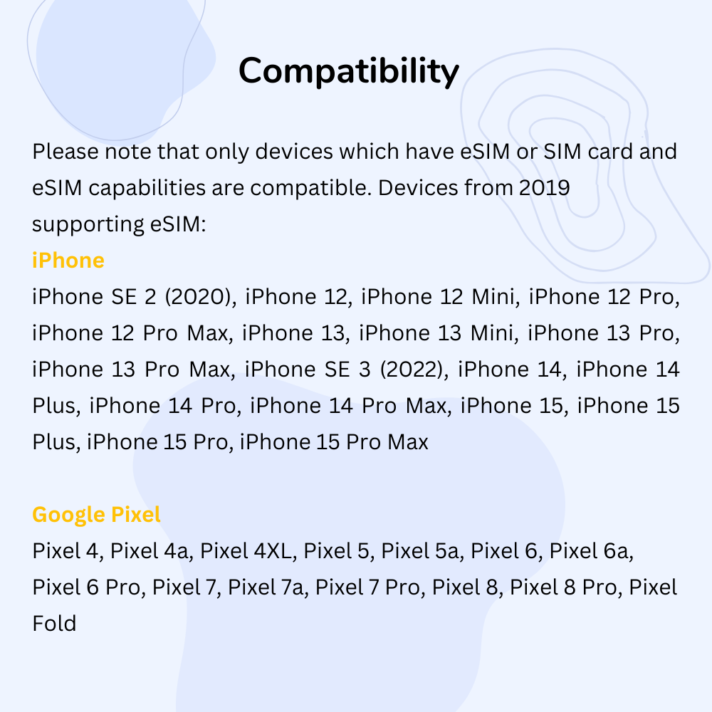 - Verify your device's eSIM compatibility before purchase; not all phones support eSIMs.