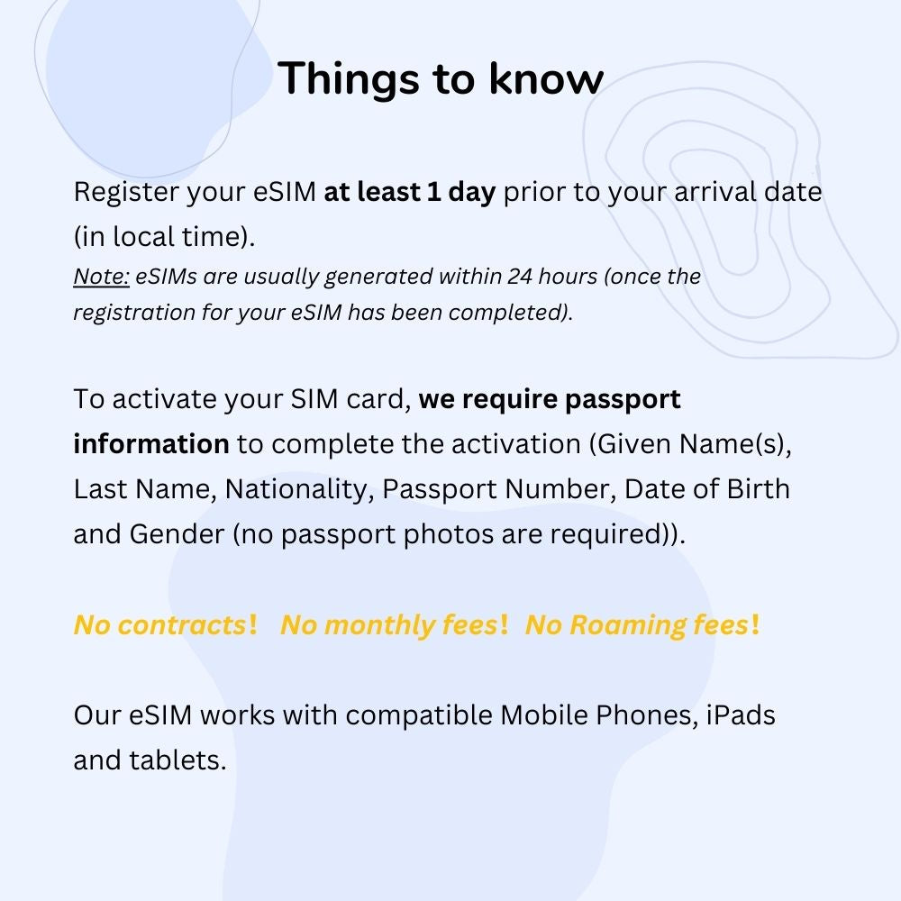- Do not delete your eSIM profile — it cannot be reinstated or refunded.