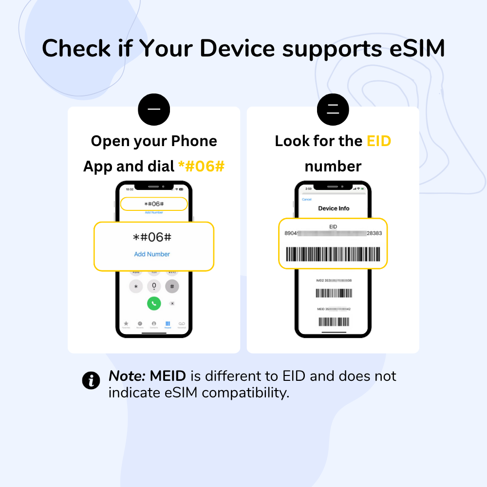 Dial *#06# – if you see a 32-digit EID, your phone supports eSIM.