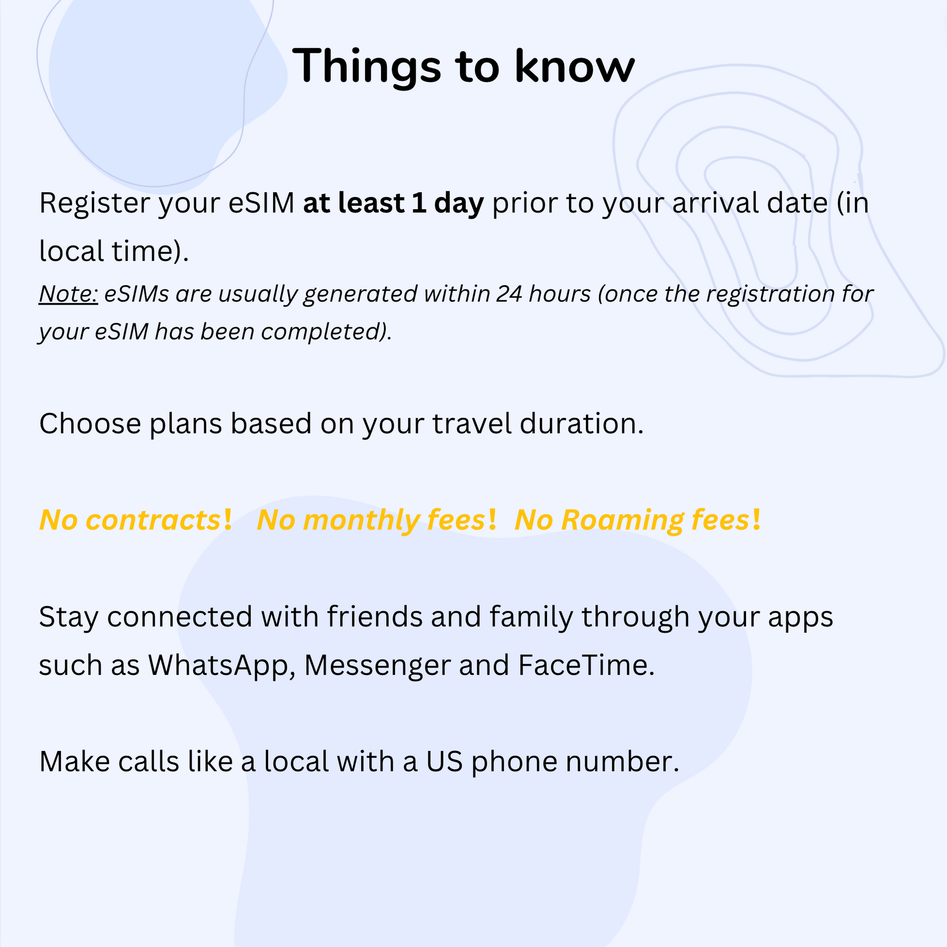 - Please ensure you submit the activation request at least 1 day prior to your arrival date (in local time), to give us enough time to complete the activation request prior to your arrival.