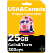 加拿大旅行eSIM卡 25GB数据 - AT&T